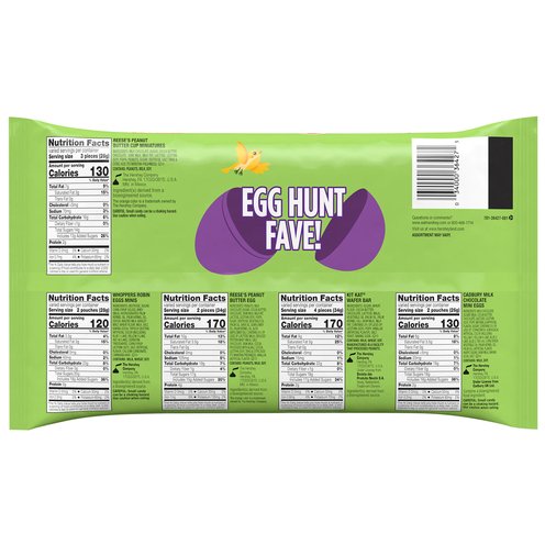 - Includes Reese's Peanut Butter Cup, Reese's Peanut Butter Egg, Kit Kat, Cadbury Mini Eggs, and Robin's Eggs Minis