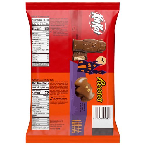 - KitKat Counts Bars: Sugar, Cocoa Butter, Chocolate, Wheat Flour, Lactose (Milk), Skim Milk, Vegetable Oil (Palm Oil, Palm Kernel Oil), Milk Fat, Contains 2% or Less of: Lecithin (Soy), PGPR, Vanillin (Artificial Flavor), Salt, Yeast, Baking Soda. Reese's Peanut Butter Bats: Peanuts, Milk Chocolate (Sugar, Cocoa Butter, Chocolate, Skim Milk, Milk Fat, Lactose, Lecithin (Soy), PGPR), Sugar, Dextrose, Vegetable Oil (Palm Oil, Shea Oil, Sunflower Oil, Palm Kernel Oil, &/or Safflower Oil), Contains 2% or Less of: Lactose (Milk), Reduced Protein Whey (Milk), Salt, Chocolate, Skim Milk, Cocoa Processed with Alkali, Cocoa, Lecithin (Soy), TBHQ & Citric Acid (to Maintain Freshness), Vanillin (Artificial Flavor).