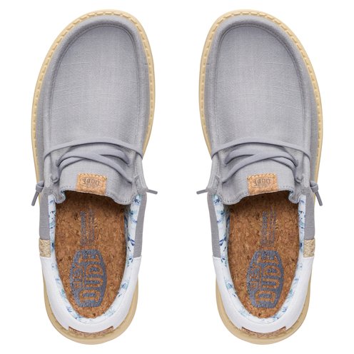 Every summer day should feel like you're in a resort. These Wally shoes are ready to go from the poolside bar to the hotel balcony. Maybe you'll go on an excursion. Anything can happen. The insole is cork, so no socks needed. The front is linen like your best pair of vacay pants.