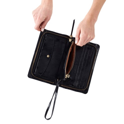 - Interior Back: Slip pocket, pen pocket & zip pocket