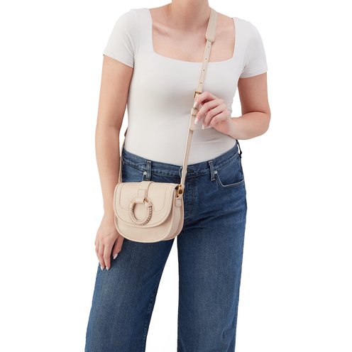 This saddlebag crossbody is crafted in soft, pebbled leather with a hand-wrapped leather ring detail. Designed for daily wear and timeless style, it blends function with cool elegance—inviting you to express your individual style with a hint of rugged luxe edge.