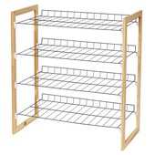 Multi-purpose wood and steel shelving unit provides fours levels of easily accessible storage space with a contemporary design. Natural wood frame provides style and structure. Sturdy steel shelves are perfect for sweaters, shoes, bags, or anything you'd like to keep organized and visible. Elevated shelf back keeps items in their place. Perfect for any room in the house.