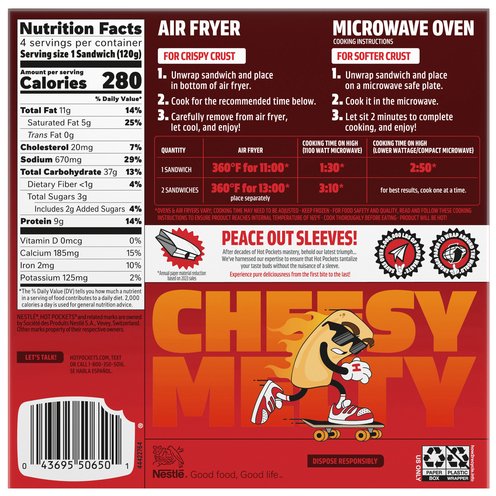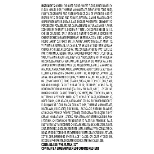 Ham and real reduced-fat cheddar cheese combined inside a crispy, buttery crust for a tasty frozen lunch snack.