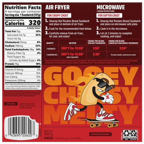 We stuffed your favorite pizza toppings into a deliciously crispy Hot Pockets sandwich. These Hot Pockets are loaded with pepperoni, reduced fat Mozzarella cheese, and stuffed inside a warm and crispy crust.