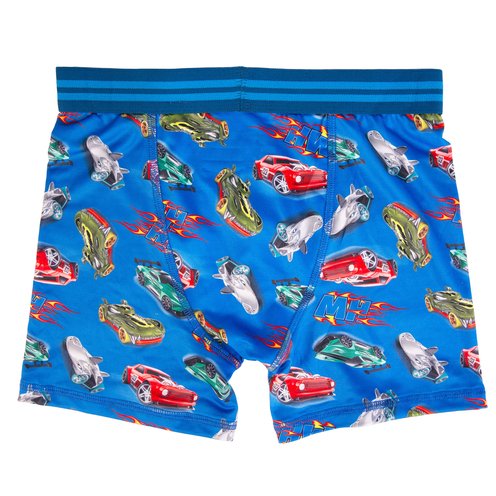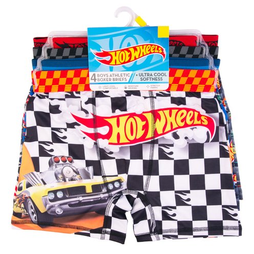 Get your engines ready with this Hot Wheels 4-pack of boys’ athletic boxer briefs. These briefs are designed with bold racing graphics, including signature flames and cool cars. Made with a soft polyester blend for breathability and flexibility, each pair offers comfort, durability, and speed-ready fun. Whether cruising through the day or zooming into dreams, these are built for kids in motion.