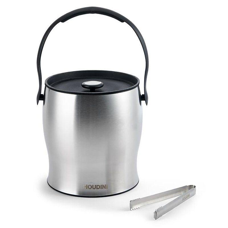 The houdini deluxe ice bucket has a double-wall construction that keeps ice frozen for hours. Its large capacity requires fewer refills.