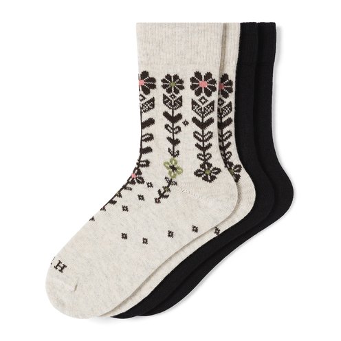 Add a touch of elegance and versatility to your sock drawer with our Descending Flower 2-Pair Crew Sock Pack. This curated set includes one pair adorned with a delicate descending flower pattern and another in a classic solid color, both designed to complement any wardrobe. Crafted for comfort and style, these socks are perfect for elevating your everyday attire.