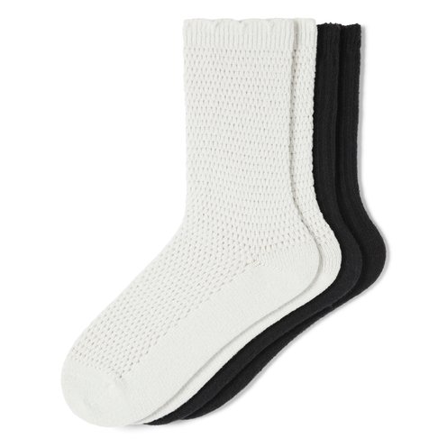 - Dual Design: One pair showcases a breathable lattice knit structure with scalloped edges, while the other offers a timeless ribbed texture