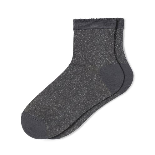 Elevate your sock game with our Metallic Opaque Anklet Socks, designed to add a touch of sparkle to your daily ensemble. Crafted from a soft cotton blend, these socks feature a subtle metallic sheen that catches the light, offering a sophisticated twist on the classic anklet style. The opaque fabric ensures comfort and coverage, making them perfect for both casual and dressy occasions.