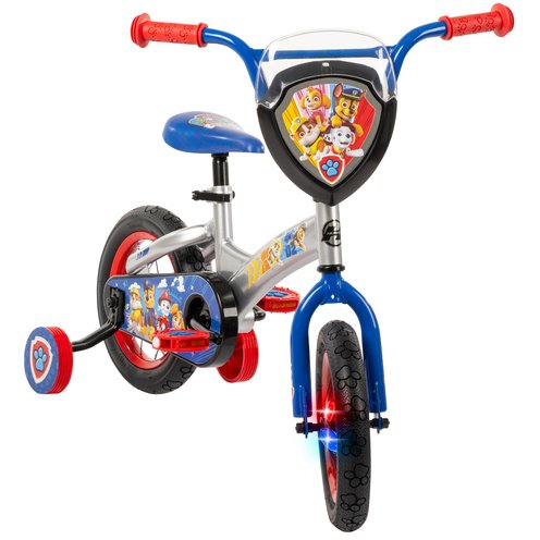 Get ready for big adventures with the Paw Patrol Kids Bike—where every ride is a rescue mission! The 3D handlebar plaque brings Chase, Marshall, Skye, and Rubble to life, so your little hero can lead the team on exciting neighborhood adventures. Bright Paw Patrol graphics and a fully enclosed chainguard add extra fun while keeping little legs and fingers safe. Paw-print grips make it easy for small hands to stay comfortable and in control, complete with built-in safety bumpers for every twist and turn. The durable steel frame is built tough for endless adventures—backed by a limited lifetime warranty for peace of mind. As your child grows, the quick-release seatpost makes height adjustments simple, while the padded saddle keeps every ride comfy and full of Paw Patrol fun. With this bike, your little one is always ready to roll to the rescue!