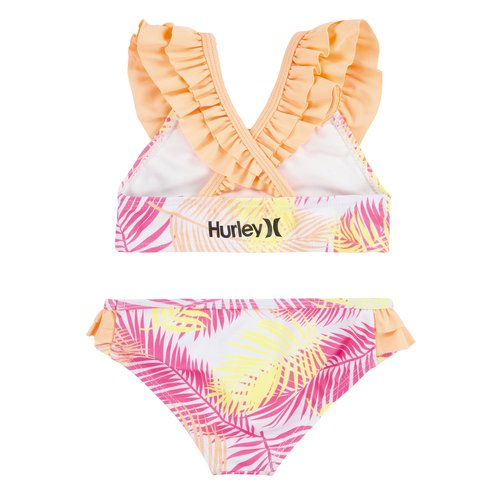 Tropical vibes meet adorable ruffles in this palm-leaf tankini. The chlorine-friendly fabric keeps its color and shape swim after swim. Perfect for beach days, pool parties, and puddle-jumping moments.