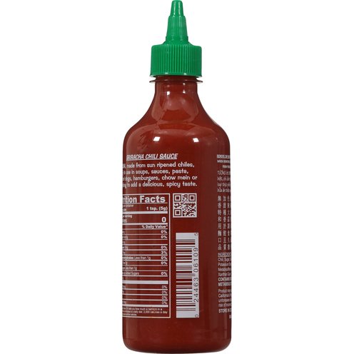 Natural color. Sriracha Chili Sauce: Sriracha, made from sun ripened chiles, is ready to use in soups, sauces, pasta, pizza, hot dogs, hamburgers, chow mein or on anything to add a delicious, spicy taste. Made in U.S.A.