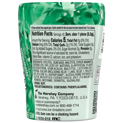 - Xylitol, Gum Base, Maltitol Syrup, Mannitol Contains 2% or Less of: Natural & Artificial Flavor, Maltodextrin, Gum Acacia, Maltitol, Lecithin (Soy) Artficial Color (Including Blue 1 Lake, Blue 1, 1, Yellow 5 Lake, Yellow 5), Aspartame (Phenylketonurics: Contains Phenylalanine), Acesulfame Potassium Gelatin, Modified Cornstarch, BHT (to Maintain Freshness), Neotame, Sorbitol, Sucralose.