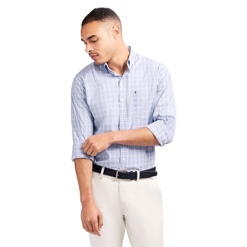 This classic fit, long sleeve, button down shirt is cut from an easy-to-wear fabric with added stretch, so it keeps its shape and moves with you throughout the day. The cotton-blend is machine washable for easy care and since it?s made from recycled materials, it?s also easy on our planet.