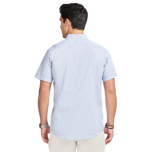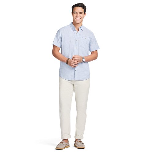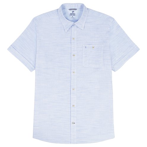 This IZOD shirt offers a casually cool, comfortable fit with an athletic cut for an easy, untucked look. Made from soft cotton slub, it?s a true wash-and-wear shirt that comes out of the dryer wrinkle-free and ready to wear.