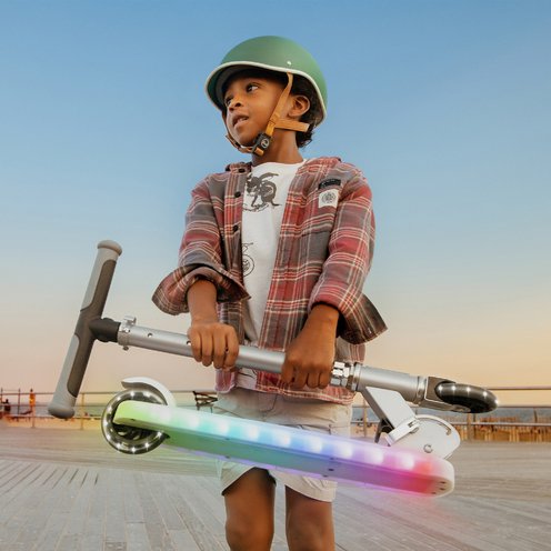 There’s a new kick scooter on the block –and it’s kicking the competitors to the curb. The Jetson Helio X Folding Light-Up Kick Scooter is a premium kids scooter that looks every bit as it good as it rides. The Jetson Helio comes with LED light-up wheels,LED light-up stem, and a LED light-up deck whichensure kids bring the party to the park. Parents will love the Jetson Helio X’s easy folding mechanism which makes it super simple to carry and store.