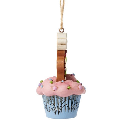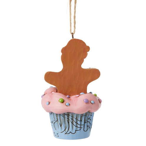 This delightful Jim Shore ornament features a cheerful gingerbread man holding a candy cane, joyfully popping out of a sprinkled cupcake. With his charming smile and festive details, he adds a sweet touch of whimsy to your holiday tree decorations.
