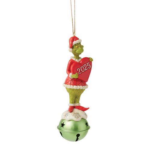 Perched atop a gleaming jingle bell, the Grinch grins in his Santa suit, holding a heart marked with the year 2025. This festive Jim Shore ornament reminds us to live in the moment and create holiday moments worth remembering for years to come.