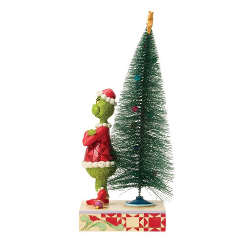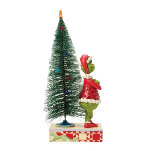 This playful Jim Shore design features The Grinch, arms crossed with a smirk, exuding snarky attitude as he stands beside a beautiful sisal tree with vibrant ball ornaments. Bring mischief home with Jim Shore's intricate detailing and rich colors.