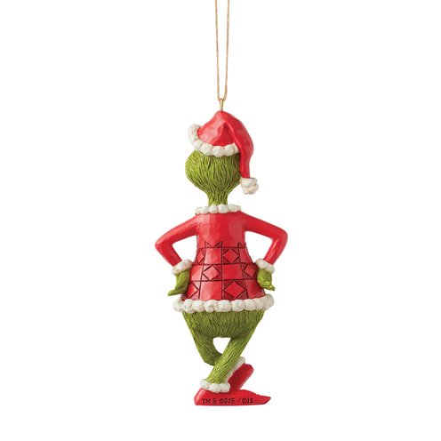 Striking a sassy pose, The Grinch stands with ankles crossed and hands on his hips, his brow furrowed with classic mischief. This Jim Shore ornament captures The Grinch's stubborn charm, bringing a dose of Whoville's favorite grump to your holiday.