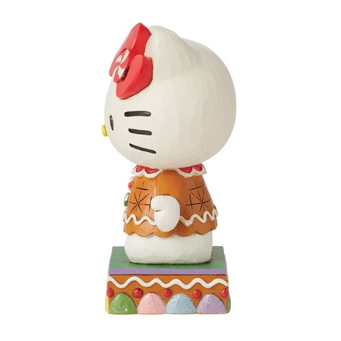 Celebrate the holiday season with Sanrio! This inspired Jim Shore design features Hello Kitty dressed in gingerbread. She wears peppermints as buttons and her bow. On a stage of gumdrops and icing, she's a sweet addition to your holiday home decor.