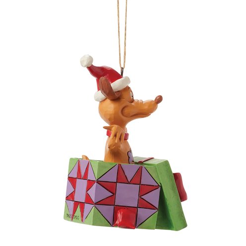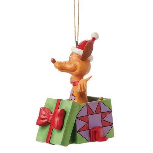 The Grinch's dog, Max, springs out of a gift box, arms open wide with a Santa hat, ready to share a warm holiday hug. This Jim Shore ornament captures Max's sweet spirit, adding a heartwarming touch of Whoville cheer to your tree.