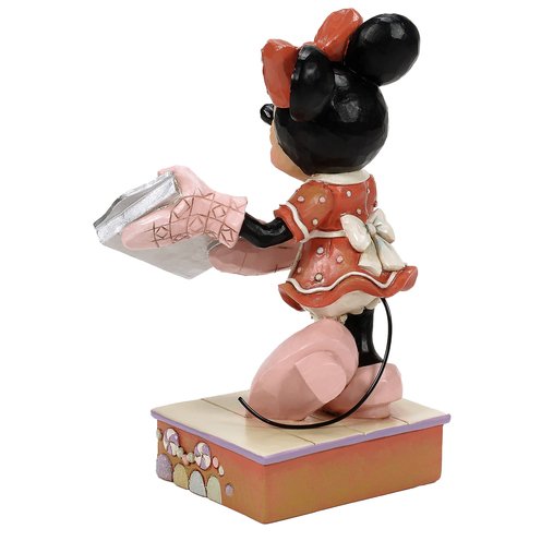 Dressed in a delightful gingerbread-inspired dress and bow, Minnie Mouse shares freshly baked cookies in this heartwarming Jim Shore scene. Standing on a stage of colorful candy, Minnie brings the warmth and sweetness of the season to life.