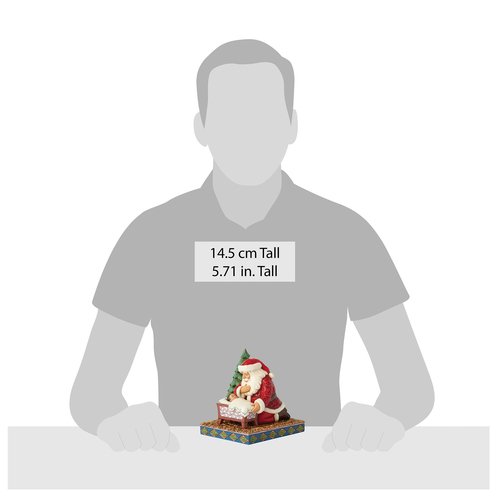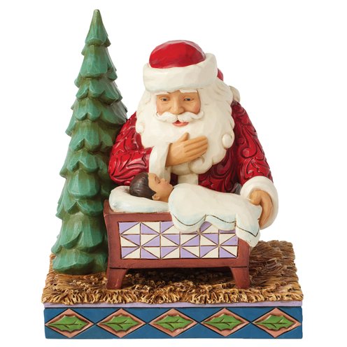 In this touching Jim Shore design, Santa kneels beside a cradle, hand over his heart, as he gazes with overwhelming joy at the sleeping baby Jesus. His serene expression reflects the deep reverence for the true meaning of the season.