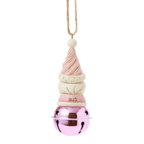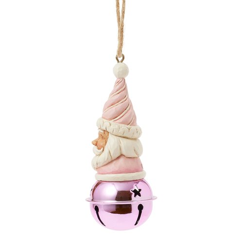 This delightful Jim Shore Heartwood Sweets jingle bell ornament features a charming miniature bust of Santa, complete with a pastel pink icing hat and rosy cheeks that exude holiday cheer. Ring in the season with Jim Shore!