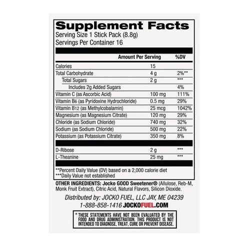 JOCKO Hydrate delivers a purpose-built blend of four essential electrolytes - sodium, potassium, magnesium, and chloride - at clinical doses that mirror the body's sweat composition. This formulation ensures fast, efficient rehydration, making it more effective than plain water or incomplete alternatives.