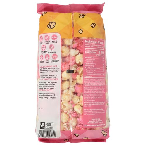 Gluten free certified by SCS Global Services. Gluten free. Whole grain. Non-GMO Kernels. Virginia�s finest. No preservatives. We love birthday cake - who doesn't? So when our team members suggested making it new flavor, we loved the idea! What makes our popcorn so Unique, you may ask? Well, it�s all about the taste! Our Birthday Cake Popcorn tastes and smells just like the real deal! Eating this delicious popcorn makes everyday a party! We hope you enjoy eating our artisanal popcorn as much as we enjoy making it for you! Woman owned business. Made in the USA.