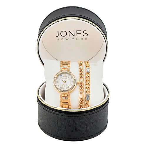 This Jones New York watch and bracelet set is the perfect way to add a little something extra to any look. Wear the watch solo or stack it up for bonus style and sparkle.