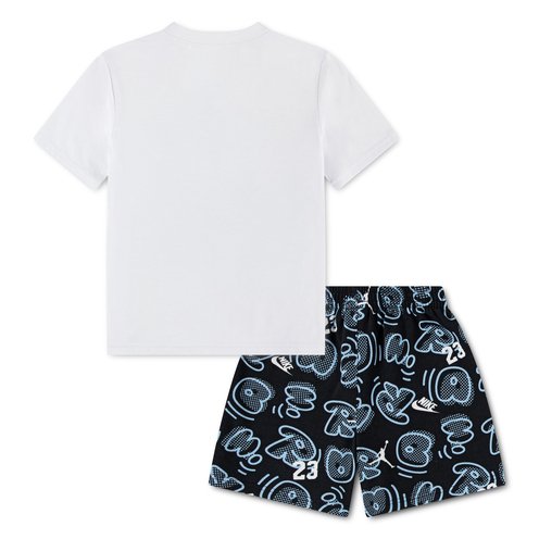 Playful graphics and sporty energy make this set perfect for active days. The soft jersey tee feels light and comfortable, while the French terry shorts add cozy flexibility for running, playing, and exploring. Bold Jordan graphics bring a fun basketball-inspired look he’ll love wearing everywhere.