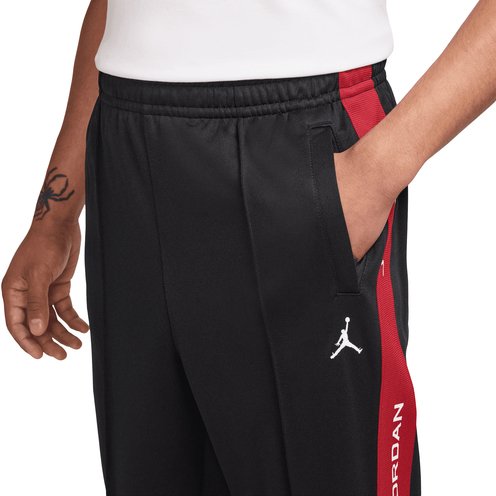 Suit up the Jordan way. Smooth double-knit fabric and a stretchy elastic waistband keep these easy-fitting pants comfortable. Branded taping and pintuck details add classic tracksuit style.