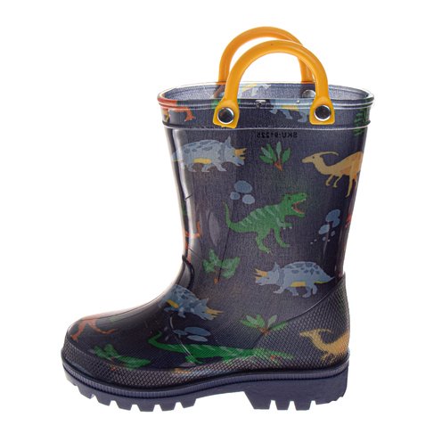 These dinosaur rain boots are the perfect companion for adventurous toddlers, blending functionality with a fun dinosaur theme. Made from 100% waterproof PVC, these boots keep little feet dry during rainy escapades. The lining ensures maximum comfort with every step. The easy pull-on loops make soaring out the door a breeze.