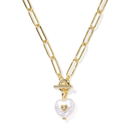 The Sasha Gold Heart Link and Chain Necklace gives pearls a major (and adorable) update. Featuring a heart-shaped freshwater cultured pearl with a metallic beauty mark on a toggle closure paperclip chain, this trend-forward necklace will become a unique and lovely piece for your collection.