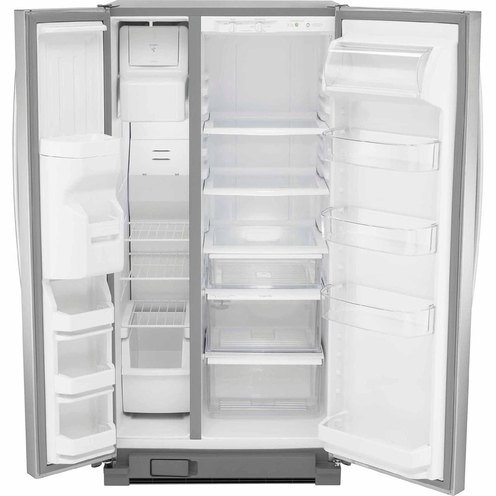 The stainless steel 21 cu. ft. Kenmore side-by-side refrigerator 5179 features smooth, contoured doors, hidden hinges and a metal handle that will add a modern look to your kitchen décor. Within the refrigerator compartment, LED lighting casts a natural light on your food, making it easy to see the contents in your refrigerator and find what you need quickly. The electronic ice/water dispenser on this Kenmore® fridge delivers filtered water, and includes a light, lock function, and selections for crushed or cubed ice. The filter will dispense fresh water for up to 6 months, and an indicator light tells you exactly when it needs to be replaced.