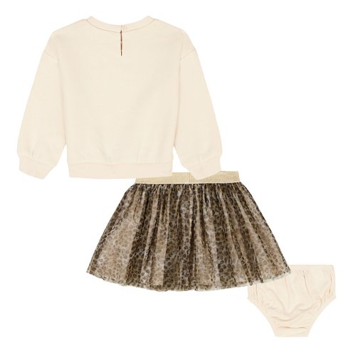 Cute and fun knit skirt set with leopard print bow on the top and leopard print matching skirt.