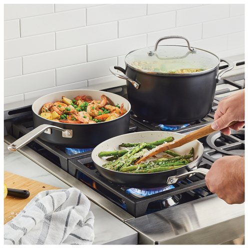 - TOUGH, FORGED CONSTRUCTION: Hard anodized ceramic nonstick pots and pans from KitchenAid are 8x harder than aluminum for lasting performance and feature a thick, forged base for fast and even heat conduction