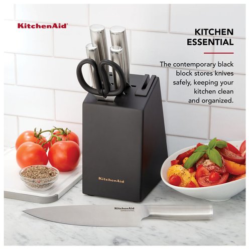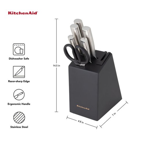 Constructed for perfect stability and control, this eastern-style ergonomic handle is well-balanced and features a brushed stainless steel finish for a secure, comfortable grip. Block features a built-in sharpener for effortless sharpening. Knives are stored safely in the knife block keeping your kitchen clean and organized.