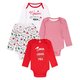 Koala Baby Infant Girl Christmas Long Sleeve Bodysuit, 4-Pack