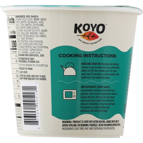 Freeze dried soup block. Certified organic by ECOCERT SA. Gluten free certification program. Beyond celiac. Gluten free. www.GF-CERT.ORG. Wakame Miso. It's time to liberate your senses. Go ahead and conquer your quest for adventurous taste and find your inner Zen through our authentic Asian fusion creations. KOYO is your ticket to superior quality and our ramen made with organic noodles are expertly fashioned by proprietary extrusion process. Ready in 9 minutes. Freeze dried soup block. 100% Quality guaranteed