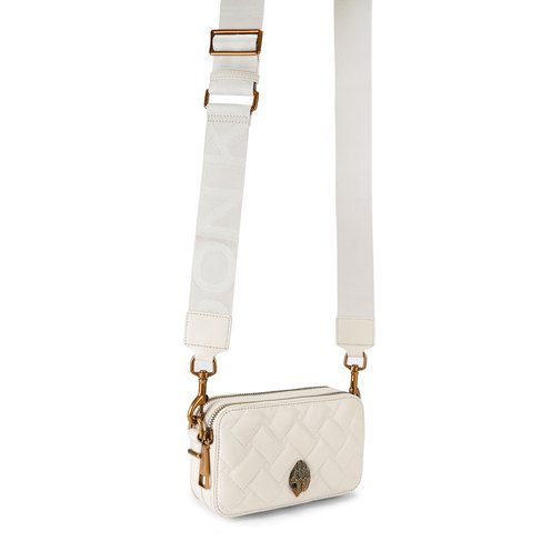 This Dual Zip Kensington Camera Bag is crafted from a bone leather with overstitch quilting detail. There is an antiqued brass eagle head sat on the front of the bag.