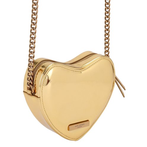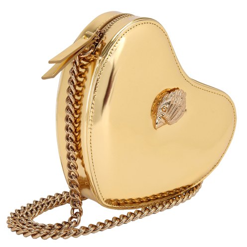 The Kensington Heart Purse is crafted from a metallic gold leather. The gold eagle head features all over feather detail on the front flap.