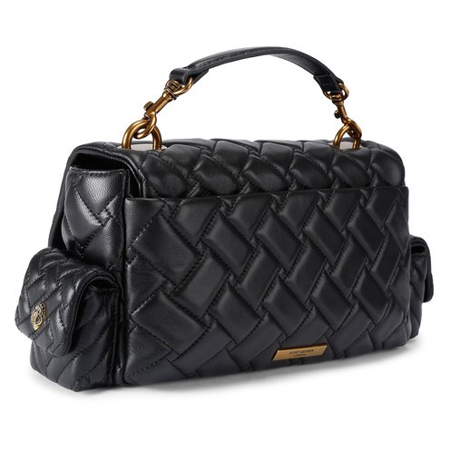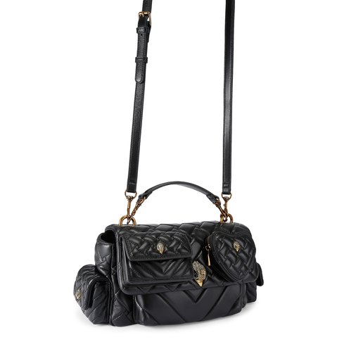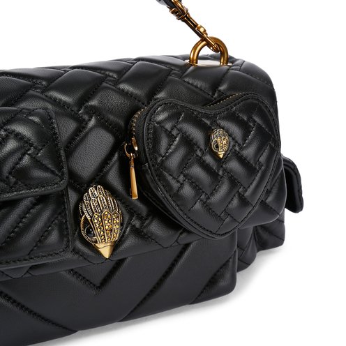 The Kensington Multipocket bag is crafted from leather with overstitch quilting detail. There are two statement pockets in heart and micro Kensington style with two flap pockets on the sides.