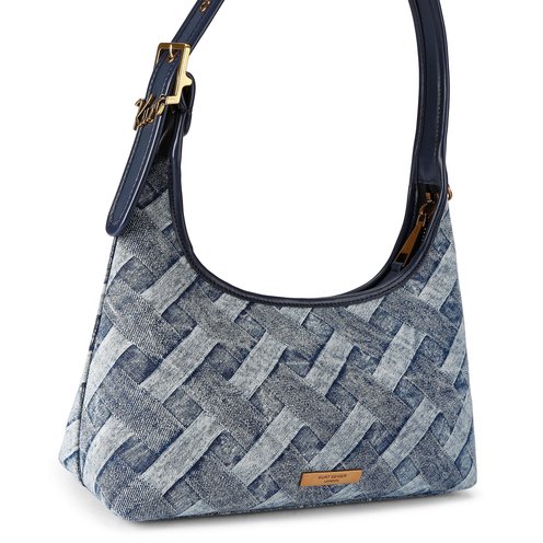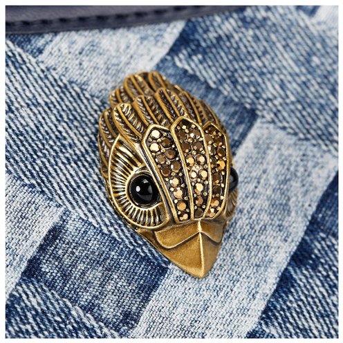 This Kurt Shoulder Bag is crafted from a bleached weave denim fabric. There is an antiqued brass eagle head sat on the front of the bag.