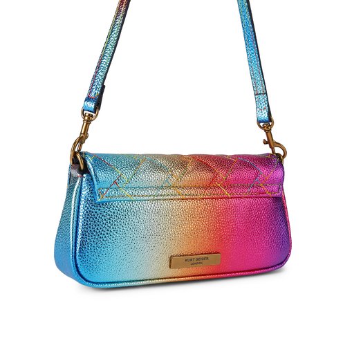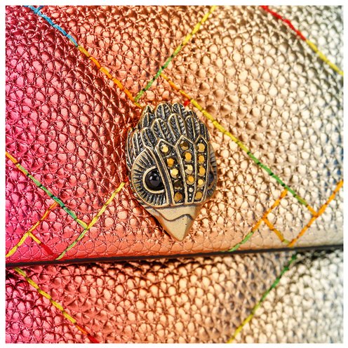This Pickle Shoulder Purse is crafted from an ombre metallic leather. There is an antiqued brass metal eagle head with crystals sat on the front flap.