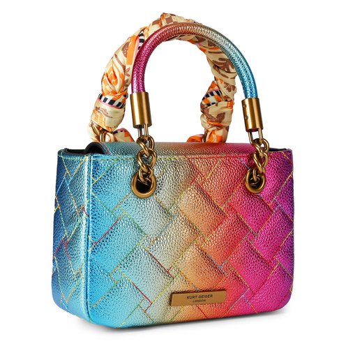 This Mini Square Kensington Purse is crafted from a pebble grain ombre leather with overstitch quilting. There is an antiqued brass eagle head with sunglasses on the front matching the antiqued brass hardware.