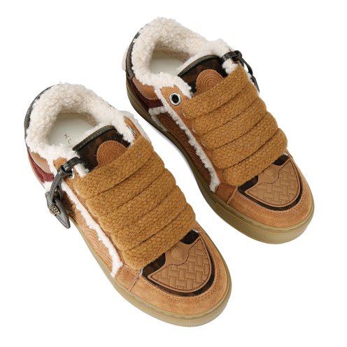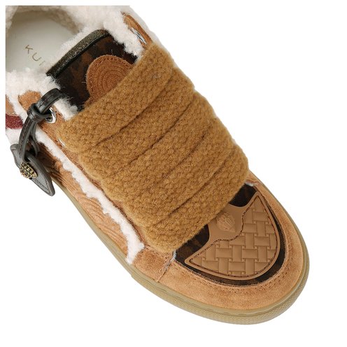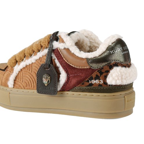 The Southbank Tag sneaker features an embossed suede upper. There is a brown leather tab on the laces with antiqued brass eagle head on top.