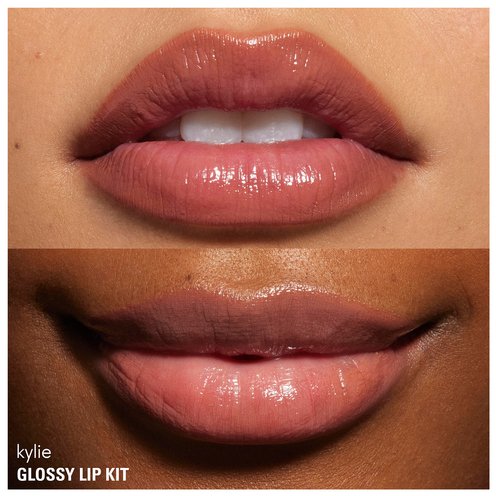 The Kylie Cosmetics Glossy Lip Kit is your ready-to-go lip routine for a defined, glowy lip that lasts. Featuring Precision Pout Lip Liner, an ultra-precise, wooden lip liner pencil that grips onto lips for seamless, tug-free application, and Supple Kiss Lip Glaze, a lip gloss with a cushiony, hydrating formula that delivers mirror-like shine and sheer color.